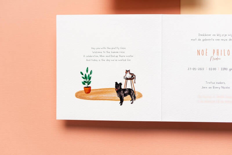 De kaart is gedrukt op 300 grams luxe papier met structuur